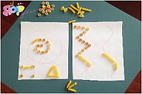 Нарисуйте на листах бумаги различные узоры и фигуры и предложите малышу повторить их, выложив какими-либо мелкими предметами (крупой, камешками, ракушками).