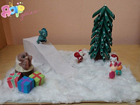 3. Из белого пластилина скатать две колбаски и сделать из них овальные лепешки (крылышки).